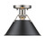 Bring industrial flair into your home with the Yep by Golden Lighting Orwell 1-light Flush Mount. Featuring a metal shade and a pewter frame, it transforms your space into a modern haven. The metal shade features a classic Matte Black finish, delivering a sleek and non-reflective surface that absorbs light while adding a sophisticated touch. Our Pewter finish offers an appealing sheen with its medium-grey hue and finely brushed texture that beautifully diffuses light. Perfect for low ceilings in hallways, closets, laundry areas, and bathrooms, this fixture is damp location rated, making it suitable for areas with occasional moisture. Requires 1 E26 Medium base bulb (not included) with a maximum wattage of 100. Overall dimensions are 10"W x 8"H x 10"D. Elevate your decor with this stylish flush mount that combines functionality with modern design.