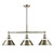 Bring industrial elegance into your home with the Yep by Golden Lighting Orwell 3-light Island Light in Aged Brass. Featuring metal shades and an aged brass frame, it creates a welcoming atmosphere. The aged brass shades, with their warm, antiqued gold base and distinctive brushed texture, emit a rich, warm glow, enhancing both functionality and style in your kitchen space. Our aged brass finish adds a touch of elegance reminiscent of vintage heirlooms, perfect for traditional, transitional, or industrial-inspired interiors. Designed for versatility, it's dry location rated, ideal for indoor spaces not subject to moisture, such as bedrooms and living rooms. Installation is a breeze with its sloped-ceiling compatibility, and you can customize the hanging length, adjustable from 17.125" to 59.125". Overall dimensions measure 35.75"W x 14.5"H x 10"D, requiring 3 E26 medium base bulbs (not included) with a maximum wattage of 100 each. This island light is more than just illumination, it's a statement piece that embodies quality and charm.