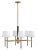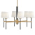 Saunders boasts a striking yet effortless appeal, blending traditional elements with captivating, mid-century modern details. A spoked silhouette and decorative stem holders are finished in Black and Lacquered Brass, paired with blown, etched opal glass shades.