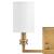 A modern interpretation of traditional torch sconces, Moore’s square stems and beveled back plate are complemented by decorative cast details. Off-white linen shades accentuated by top and bottom binding create a sophisticated, tailored look.