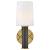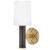 Featuring a geometric, crosshatch motif, Declan’s substantial silhouette is enhanced by a heavy cast backplate and stem accentuated by a contrasting, two-tone finish. A tall, tapered, etched opal glass shade creates softly diffused illumination and a comfortable atmosphere.