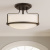 Harper’s sleek, retro design elevates the traditional ceiling mount with a unique clear seedy glass bound by a prominent metal ring and decorative knobs. Available in five classic finishes.