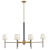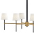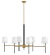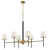 Saunders boasts a striking yet effortless appeal, blending traditional elements with captivating, mid-century modern details. A spoked silhouette and decorative stem holders are finished in Black and Lacquered Brass, paired with blown, etched opal glass shades.