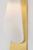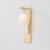 Sharp angles, sinuous curves, and sleek metalwork come together in the architectural Andros sconce. Suspended from an L-shaped backplate, the modern conical silhouette has a bell-like appearance. The opal matte glass shade is bias-cut on the end to create an elliptical opening, projecting light outwards into the room. Choose from either an Aged Brass or Old Bronze backplate for a more classic or modern look.