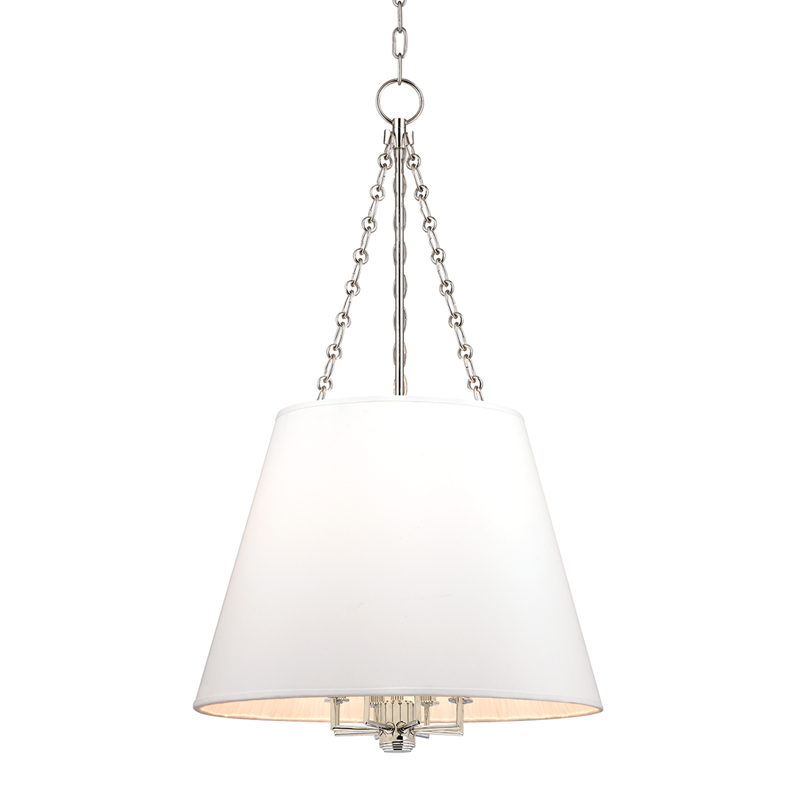 Clean-lined and smooth on the surface, closer inspection shows Burdett’s sumptuous side. Alluding to late nineteenth-century opulence, we adorn the interior of Burdett’s shade with richly gathered pleating. While the pendant’s subdued silhouette serves a contemporary sensibility, its lavish surprise rewards close appreciation.