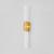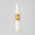 A minimalist silhouette is elevated by mechanical metalwork in Glen Oaks. This narrow sconce features two cylinders of seedy opal glass attached to a slim rectangular backplate. Adding a clean-lined detail, the two socket cups are connected with slender metal straps. Whether in the Aged Brass or Vintage Pewter finish, Glen Oaks brings elegant simplicity to a bath area.