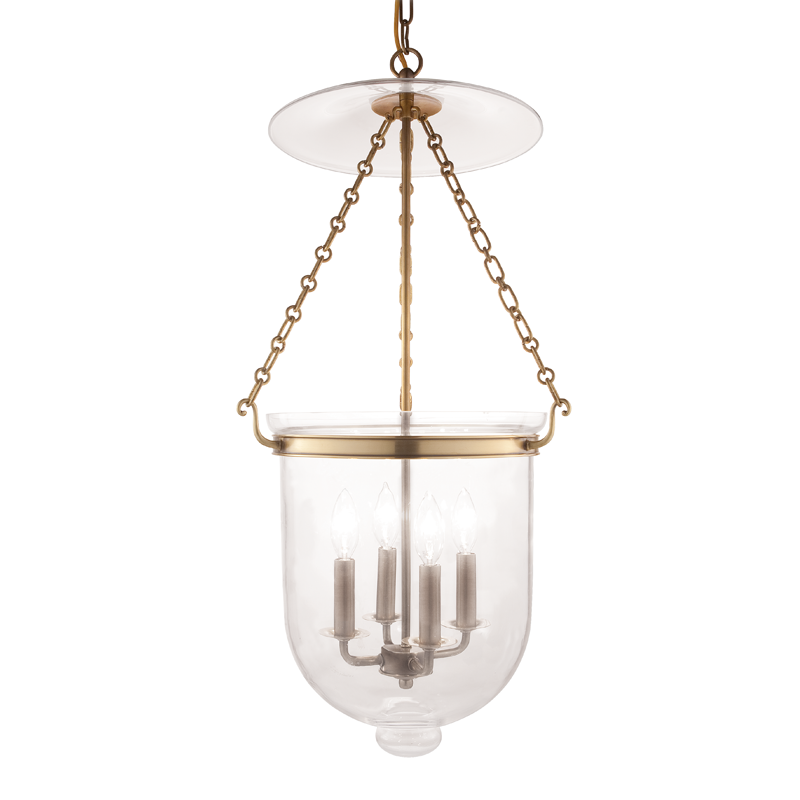 In 1887, England declared an imperial holiday to commemorate Queen Victoria’s 50th year on the throne—her “golden jubilee.” Public celebrations occurred across the empire. Photographs from India show a distinctive array of glass lanterns illuminating the occasion, representing the hybrid of Anglo and Indian design sensibilities. Hampton reproduces these historic, mouth-blown glass lanterns. While the oversized bell jar originally held a reservoir of whale oil, we suspend a candelabra array to provide warm light without the mess. The upper shade deflected the oil’s thick smoke to prevent it from staining the ceiling. Hampton comes in four metal finishes and three glass options, allowing you to customize the look to your own décor.
