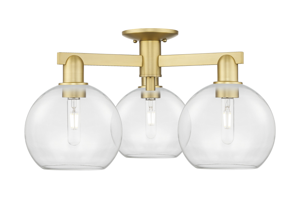 Athens - 3 Light - 26 inch - Satin Gold - Clear shade - Semi-Flush Mount