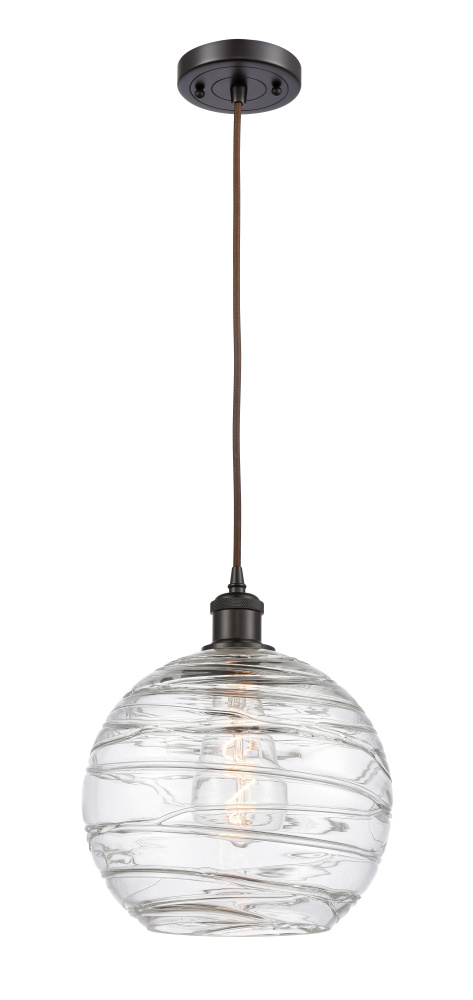 Athens Deco Swirl - 1 Light - 10 inch - Oil Rubbed Bronze - Clear Deco Swirl shade - Cord hung - Mini Pendant