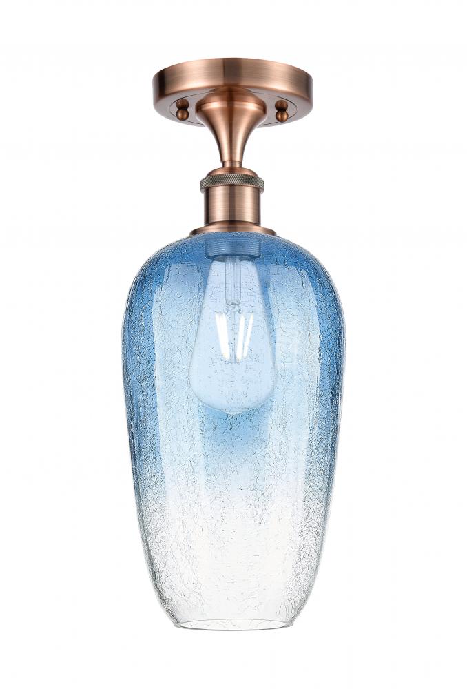 Brookhaven Flute - 1 Light - 7 inch - Antique Copper - Sapphire Blue Brookhaven Flute shade - Semi-Flush Mount