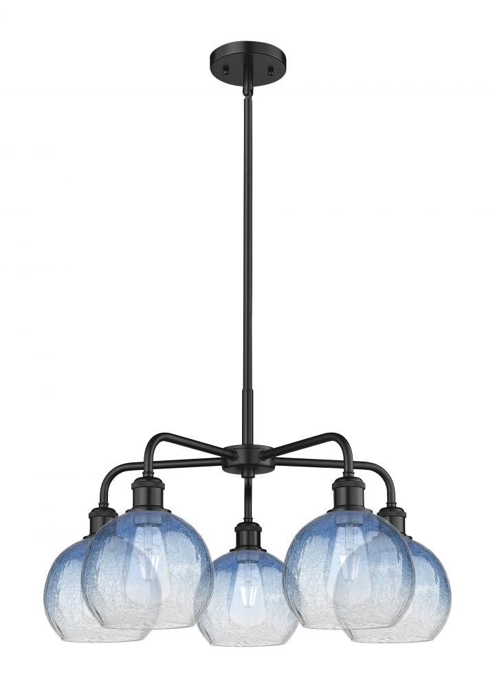 Brookhaven Globe - 5 Light - 26 inch - Matte Black - Sapphire Blue Brookhaven Globe shade - Stem hung - Chandelier