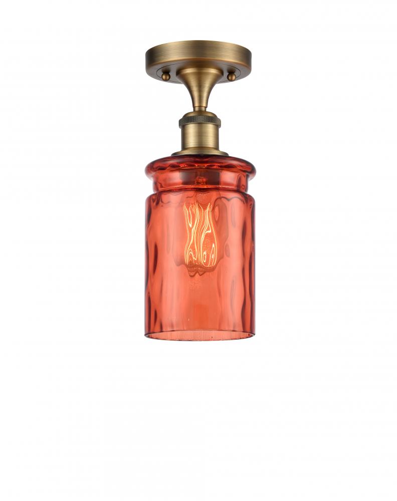 Candor - 1 Light 5" Semi-Flush Mount - Incandescent Bulb - Brushed Brass Finish - Living Coral Waterglass Shade