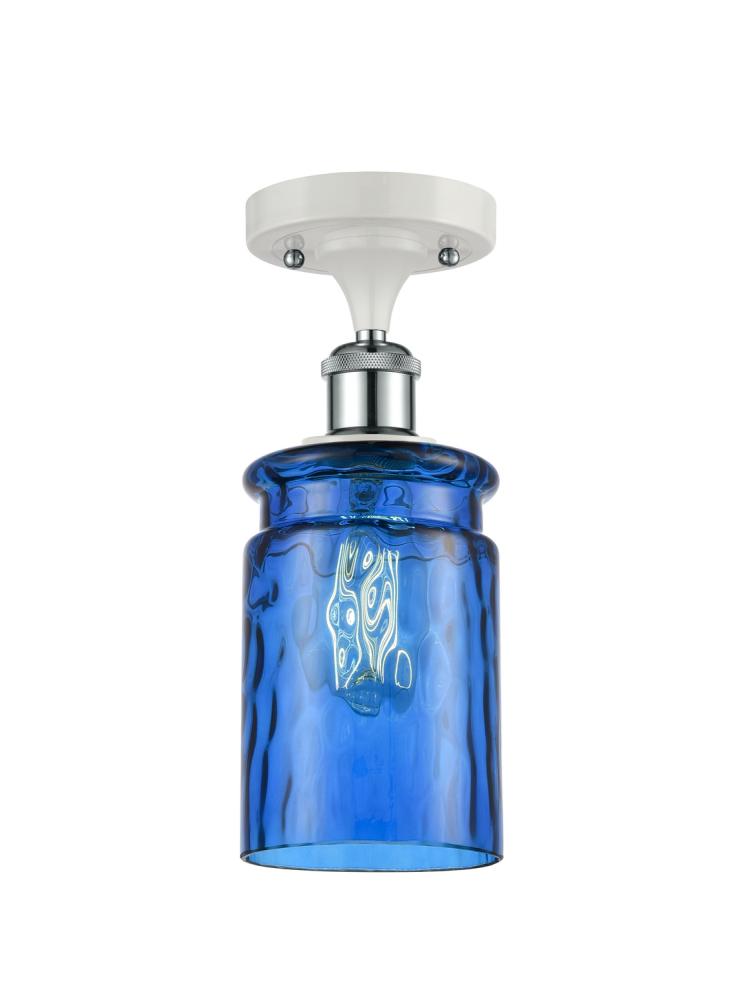 Candor - 1 Light 5" Semi-Flush Mount - Incandescent Bulb - White and Polished Chrome Finish - Princess Blue Waterglass Shade