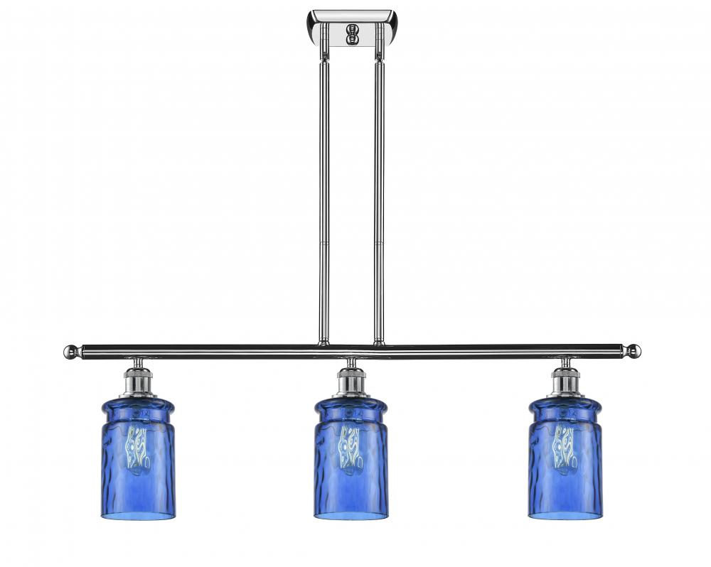 Candor - 3 Light 36" - Stem Hung Island Light - Incandescent Bulb - Polished Chrome Finish - Princess Blue Waterglass Shade