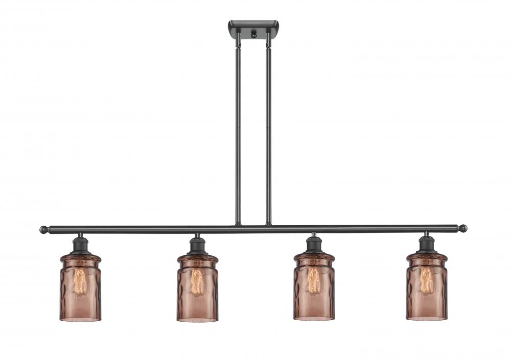Candor - 4 Light 48" - Stem Hung Island Light - Incandescent Bulb - Matte Black Finish - Toffee Waterglass Shade