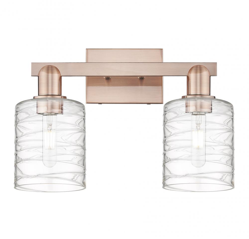 Cobbleskill - 2 Light - 16 inch - Antique Copper - Deco Swirl shade - Bath Vanity Light