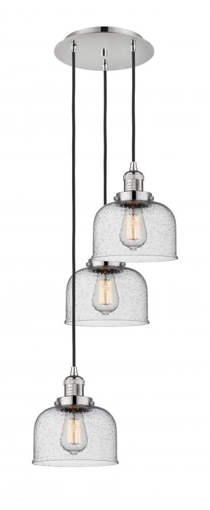 Cone - 3 Light - 14 inch - Polished Nickel - Seedy Shade - Cord hung - Multi Pendant