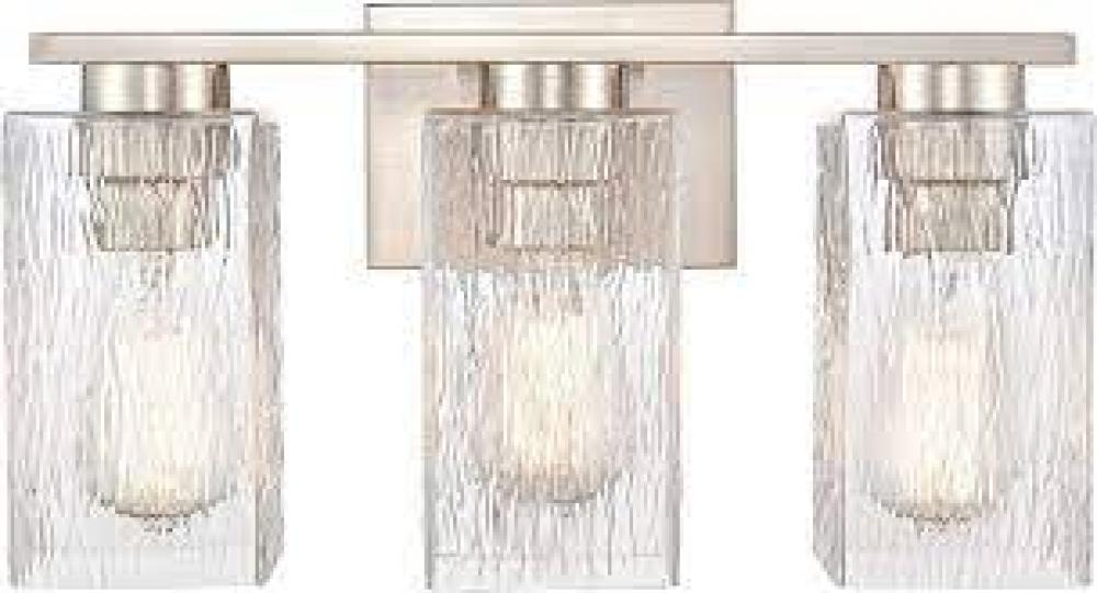 Juneau - 3 Light - 17 inch - Satin Nickel - Clear Rippled Shade - Bath Vanity Light