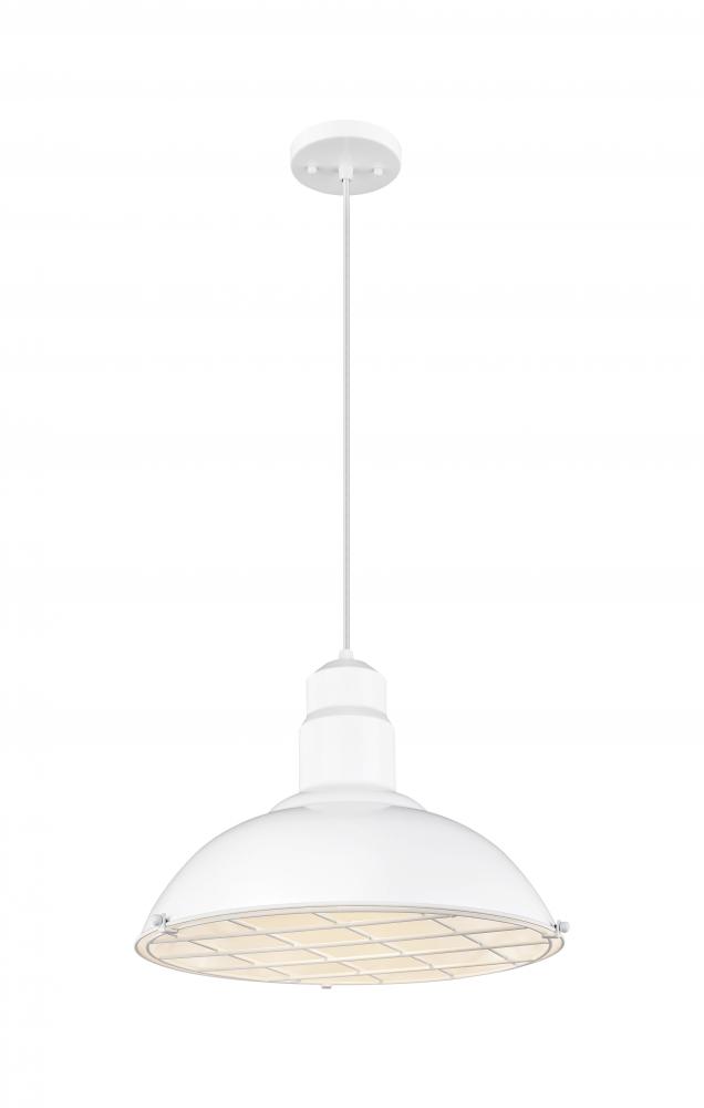 A timeless industrial pendant with a half-dome-shaped metal shade. The design is further elevated by a removable wire cage, adding versatility to the fixture. Available in neutral and vibrant color options, this pendant can fit seamlessly into a range of m