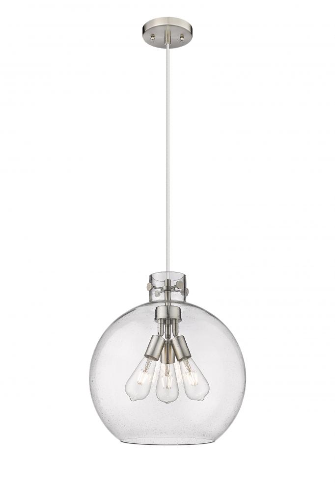 Newton Sphere - 3 Light - 16 inch - Satin Nickel - Seedy Shade - Cord hung - Pendant