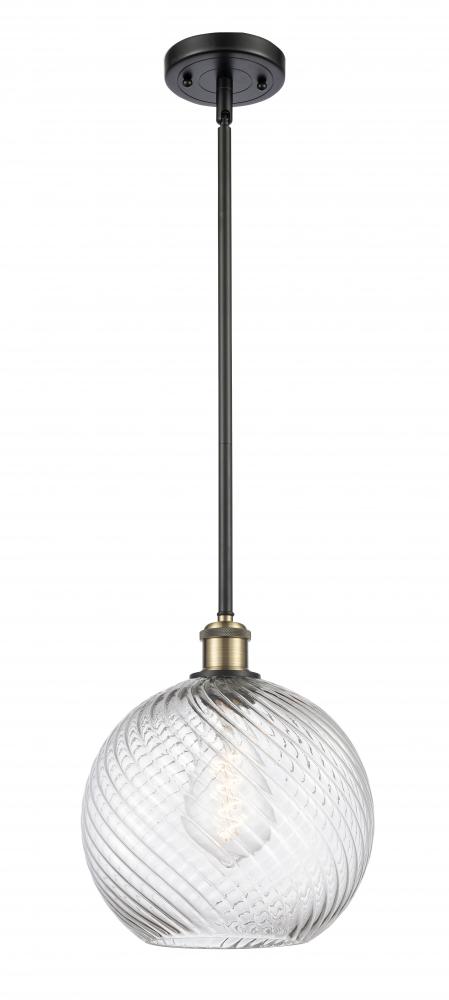 Athens Twisted Swirl - 1 Light 10" Mini Pendant - Incandescent Bulb - Black Antique Brass Finish - Clear Twisted Swirl Shade