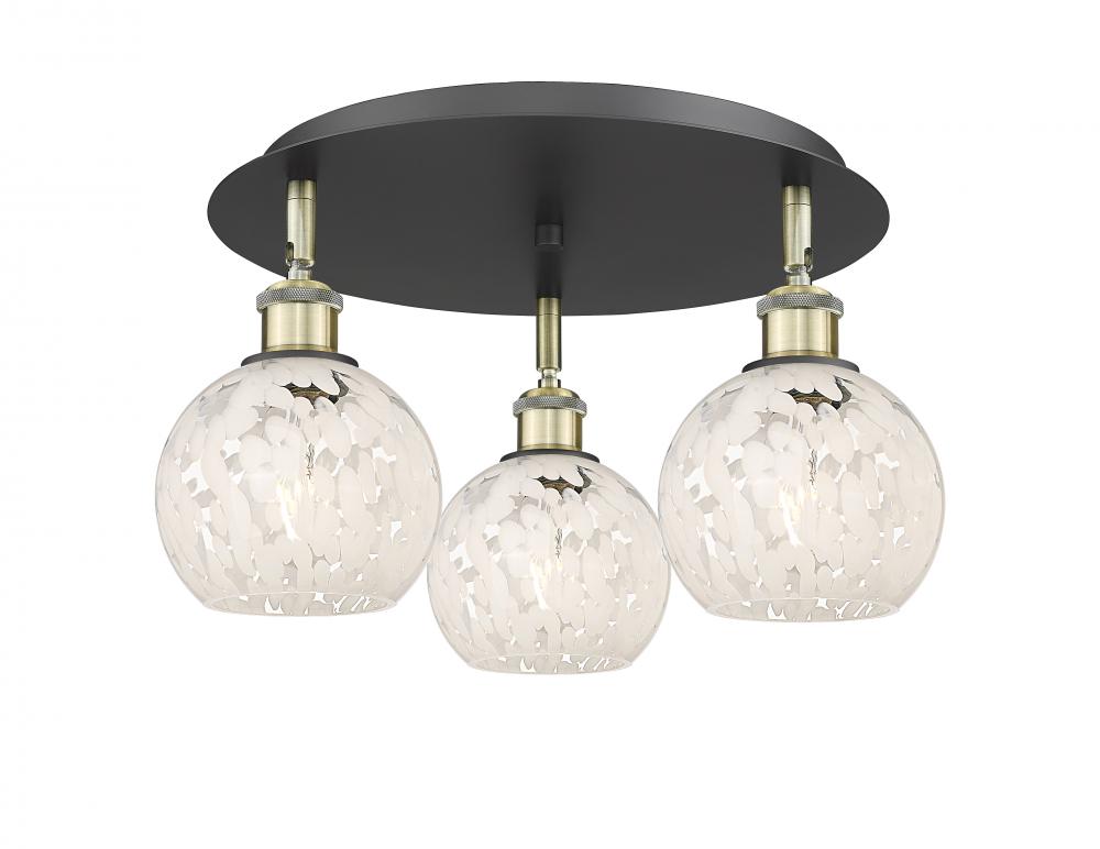 White Mouchette - 3 Light - 18 inch - Black Antique Brass - White Mouchette Shade - Semi-Flush Mount