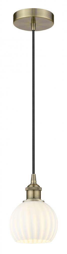 White Venetian - 1 Light - 6 inch - Antique Brass - White Venetian Shade - Cord Hung - Mini Pendant