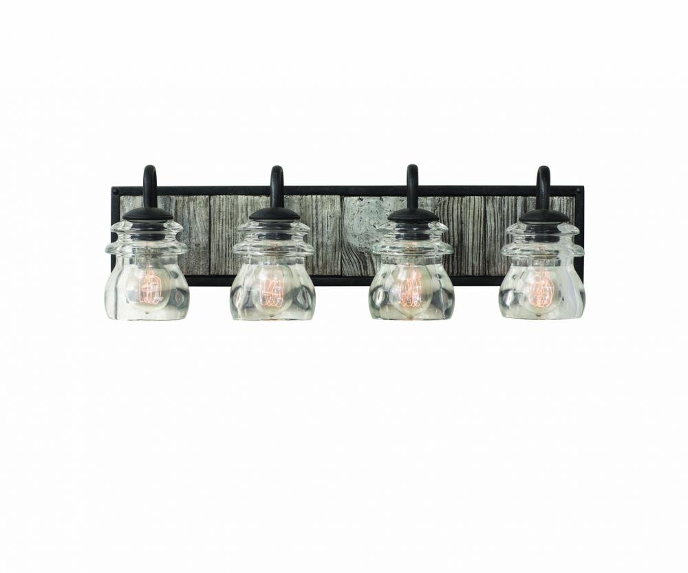 Bainbridge features Black Iron finish with a Burnt Silver Wood Backplate. Constructed of Hand Forged Wrought Iron with Clear Insulator Glass.