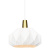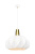 The body design resembles the Japanese traditional paper craft, origami. The lampshade itself consists of 2-dimensional geometric shapes folded together like a fan. The geometric shape used includes a number of different triangles, which creates a look of a 3D visual effect. This fixture is available in two sizes and comes with Brushed Gold accents, a white fabric cord and a white canopy.