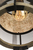 right arrow Long Description: Frames of wood finished in Barn Wood and cradled by Black metal brackets were used to create this beautiful rustic design. The Black mesh screen is accented with a band of mica and Antique Brass sockets to deliver rustic charm with all the right fixings.