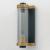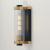 Internally ribbed clear glass tubes refract tubular lamps, creating a shimmering light effect. The glass is supported by a two-tone black frame with Aged Brass accents, making this sconce suitable for both indoor and outdoor installations. With a depth of