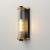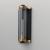 Internally ribbed clear glass tubes refract tubular lamps, creating a shimmering light effect. The glass is supported by a two-tone black frame with Aged Brass accents, making this sconce suitable for both indoor and outdoor installations. With a depth of