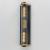 Internally ribbed clear glass tubes refract tubular lamps, creating a shimmering light effect. The glass is supported by a two-tone black frame with Aged Brass accents, making this sconce suitable for both indoor and outdoor installations. With a depth of