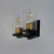 Cylinders in Clear Seeded glass on simple Satin Nickel frames or matte Black frames with Antiqued Brass socket covers. Pivoting arms on chandelier allow it to direct light up or down. Use filament lamps either tubular or Edison in shape for a Coastal or In