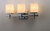 right arrow Long Description: Square glass shades ride upon a rectangular bar to create geometry at its best. Available in Polished Chrome with Satin White glass and Satin Nickel and white Linen glass.
