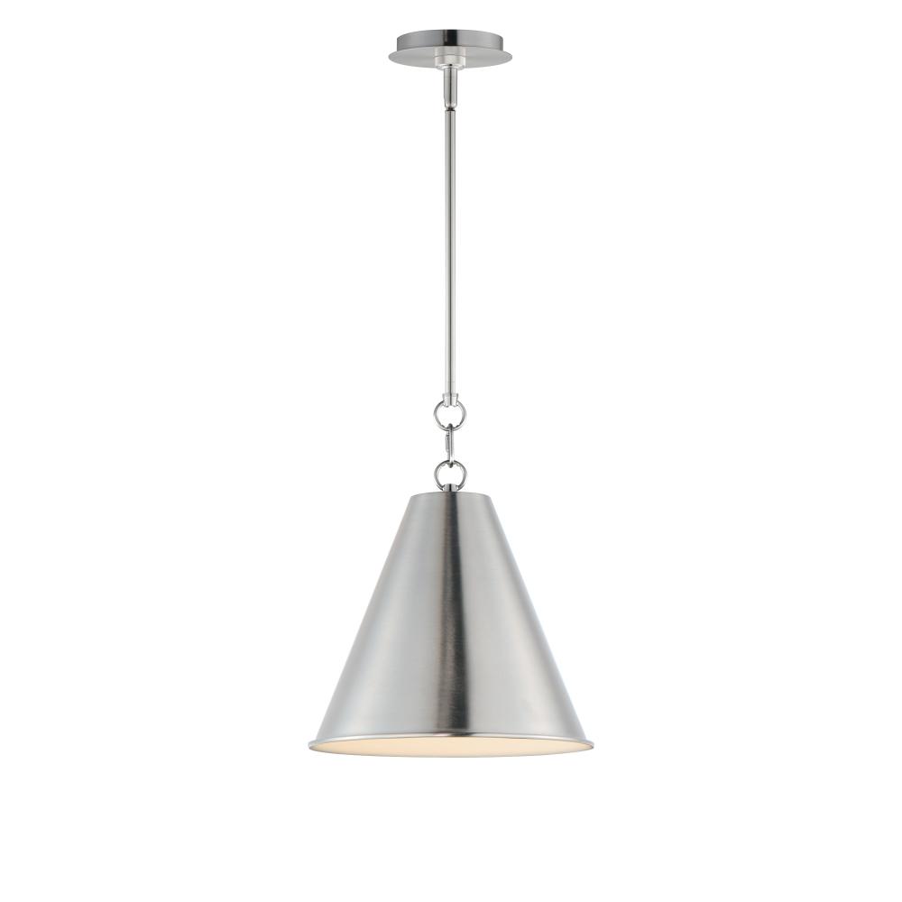 The iconic metal spun cone shade offers a transitional pendant design great as multiples over a kitchen island or dining table. Available in rich finishes including Heritage Brass, Satin Nickel, and Chestnut Bronze. All these shades are painted white on th