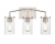 Artistic angles and a contemporary blend of metal and glass elevate the Beverlly Family of lighting to the next level. The distinctive lines of the fixtures, finished in brushed nickel, modern gold, or matte black, create the perfect framework for the beautifully beveled, clear glass globes. Available as 1-light pendant; 3- or 5-light chandelier; and 1-, 2-, 3-, or 4-light vanity, these fixtures add a subtle refinement throughout any home design.