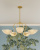 The Reva family leans into a sense of vintage nostalgia. Drawing on a botanical motif, the silhouette’s stem-like arms swoop dramatically into an S-curve to support each leaf-shaped uplight. The elongated cloud glass shades feature inner etching, diffusing light softly across a space. In both the semi-flush mount and chandelier, the classical design lines of Reva shine with a warm Aged Brass finish.