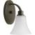 Gleeful simplicity defines the Joy Collection. Refreshing and fashionable, arcing forms of metal and fluted glass shades are enhanced by a classic Antique Bronze finish. One-light bath & vanity with white etched glass complete the look and allows you to coordinate well with other fixtures from this collection. Bring joy into your heart and into your home with this wonderful one-light bath fixture.