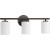 Ideal for a bathroom;Perfect for modern and transitional style settings;Handsome antique bronze finish;Elegant etched painted white glass shades;Mount the light fixture facing up or down;Use 3 medium base bulbs that are sold separately (100 W max - LED/CFL