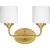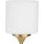 With a youthful, yet timeless flair, the Lynzie Collection brightens your day with its elegant form. Two etched white, oval shaped glass shades are held upright by delicate arms attached to a classic oval backplate coated in a brushed gold finish. Uncluttered and simple lines depict the gracefulness of this bath vanity collection and add visual interest without complexity. Ideal for a bathroom, hallway, or foyer in modern or transitional style settings, this versatile design can be mounted with the glass facing up or down for more design flexibility.