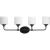 With a youthful, yet timeless flair, the Lynzie Collection brightens your day with its elegant form. Four etched white, oval shaped glass shades are held upright by delicate arms attached to a classic oval backplate coated in a matte black finish. Uncluttered and simple lines depict the gracefulness of this bath vanity collection and add visual interest without complexity. Ideal for a bathroom, hallway, or foyer in modern or transitional style settings, this versatile design can be mounted with the glass facing up or down for more design flexibility.