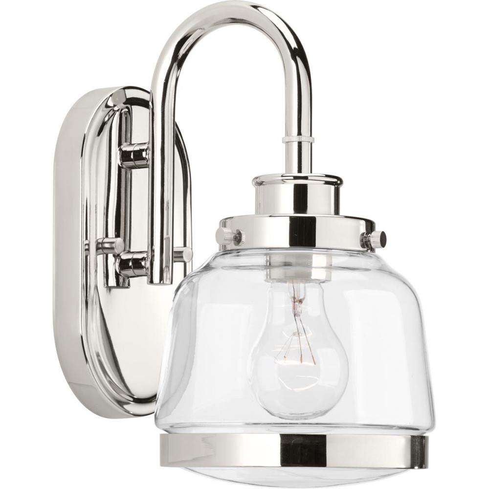 Ideal for a bathroom, dining room, hallway, or foyer;Perfect for farmhouse and vintage electric style settings;Subtle polished nickel finish;Crisp clear glass shade;Mount the light fixture facing up or down;Use 1 medium base bulb that is sold separately (7
