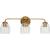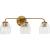 The Quillan Three-Light Vanity Light offers a graceful flourish to add distinctive designer touch. Scalloped elements create a richness of detail to complement the clarity of clear, elliptical glass shades. Each fixture includes both matching and contrasting accent rings. This versatile light can be mounted up or down to provide clear illumination to the room.