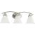Three-light bath fixture featuring soft angles, curving lines and etched glass shades that mount up or down. Gracefully exotic, the Trinity Collection offers classic sophistication for transitional interiors. Sculptural forms of metal and glass are enhanced by a classic finish. This transitional style can transform a room or your whole home with its charming versatility. Brushed Nickel finish.