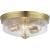 Inspired by modern architecture, Blakely two-light flush mount fixtures feature handsome details for variety of interior design styles. Clear glass highlights the lamp source and is finished in Brushed Bronze.