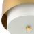 - A concentric metallic band surrounds a crisp white linen shade