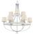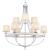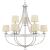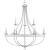The nine-light chandelier in the Gulliver Collection features arching and delicate details that curve to create an airy design. Dual toned frame color combinations in a Galvanized finish with antique white accents The hand painted wood grained texture finished to emulate weathered driftwood complements Rustic and Modern Farmhouse home decor, as well as Urban Industrial and Coastal interior settings.
