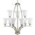 Gleeful simplicity defines this nine-light, two-tier chandelier from the Joy Collection. Refreshing and fashionable arcing forms of Brushed Nickel metal arms enhance the etched white fluted glass. Coordinating fixtures from this collection let you decorate an entire home with confidence and style. Unique stem-hung construction carries the clean line all the way to the ceiling and, for sloped ceilings, six feet of 9 gauge chain is provided to allow the fixture to hang straight and level.