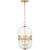 A band of Vintage Gold filigree in an interlocking hexagonal design cinches an oblong glass globe;A three-light pendant features a candelabra cluster that glows from within, casting dancing shadows through the graphic Vintage Gold band;Suitable for foyers,